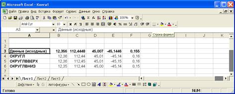 Рис. 32. Окно функции ОКРУГЛ Результат будет равен 12,36 Задание 7. Примените к исходным данным функции округления (до 2-х знаков после запятой). Сравните полученный результат с приведенным на рисунке.
