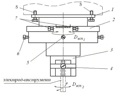 Точность и качество выполненных на электроэрозионном станке работ в значительной степени зависят от точности установки электрода-инструмента. С этой целью после закрепления электрода-инструмента в патроне производится его выверка, обеспечивающая перпендикулярность оси электрода-инструмента столу станка. Для закрепления и выверки электрода в конструкции станка предусмотрен специальный патрон (рис. 1.61), устанавливаемый в пиноль шпиндельной бабки. Патрон крепится фланцем 1 к шпинделю станка при помощи болтов 8. К фланцу патрона присоединен поворотный корпус 2, имеющий возможность поворачиваться вокруг вертикальной оси патрона на угол ±10 0 (движение