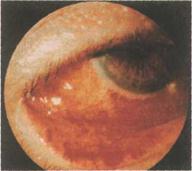 | лихорадка, фолликулы. Студенистая переходная складка, скудное слизисто-гнойное отделяемое