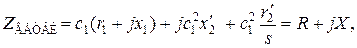 Расчет характеристик рекомендуется проводить в следующей последовательности. Вначале находят активную и реактивную составляющие комплексного сопротивления правой ветви схемы замещения (см. рис.9.1):