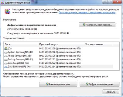 Високий ступінь фрагментації файлів змушує жорсткий диск робити додаткові дії, що приводить до уповілнення роботи комп'ютера. Файли на знімних запам'ятовувальних пристроях, таких як USB-пристрої флеш-пам’яті, також можуть стати фрагментованими. Програма дефрагментації диска робить упорядкування фрагментованої інформації для більше ефективної роботи дисків і дисководів. Програма дефрагментации диска працює за заданим розкладом, але можна запускати аналіз і дефрагментацію дисків вручну. Для цього виконаєте наступні дії.