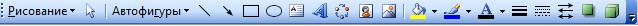 На панелі інструментів «Рисование» винесені фігури, які найчастіше використовуються в малюванні схем, об’єкт «Напис», WordArt, вставка малюнків із файлу та колекції малюнків, а також кнопки з основними налаштуваннями для вилілених об’єктів (колір заливки, колір ліній, товщина ліній, тип ліній, тип стрілки, тінь та об’єм). При натисканні на кнопці «Автофігури», користувач зможе вибрати потрібну фігуру з великого переліку