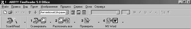 Можливості програми: • підтримує протокол TWAIN. Зі сканерами фірм Microtec і Hewlett Packard може працювати безпосередньо; • забезпечує автоматичну настройку на нові шрифти; • має вбудовану систему перевірки орфографії для швидкого виявлення невірно розпізнаних слів; • розпізнає таблиці зі збереженням їхньої структури; • підтримує більш як 40 мов, може розпізнавати тексти на мішаних мовах, наприклад російсько-українські, англо-українські тощо, причому користувач може самостійно визначити мову або групу мов для тексту, який розпізнається; • може працювати у пакетному режимі, що значно скорочує тривалість оброблення багатосторінкових документів. Пакет — це сукупність сторінок, об'єднаних загальним заголовком і впорядкованих за номерами; • забезпечує передачу розпізнаних документів до Microsoft Word та Microsoft Excel. Запуск програми здійснюється звичайними для середовища Windows засобами: або клацанням мишею на значку програми, або за командою ПУСК—Программы-ABBYY FineReader—FineReader. Після закінчення завантаження на екрані з'являється робоче вікно програми.