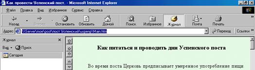 Рисунок 4. Панель Журнал у вікні програми Іnternet Explorer З Іnternet Explorer зручніше за все працювати за допомогою миші. Найважливіші команди можна викликати щигликами на кнопках, розташованих у верхній частині екрана: