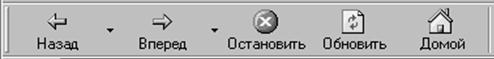 Назад - дозволяє відобразити попередню сторінку (якщо клацнути в правій частині кнопки, де зображена спрямована вниз стрілка, то відкриється список сторінок, що ви відкривали раніше, і ви зможете вибрати з нього потрібний URL) Вперед - дозволяє відобразити наступну сторінку (якщо клацнути в правій частині кнопки, де зображена спрямована вниз стрілка, то відкриється список, з якого зможете вибрати потрібний URL) Остановить - дозволяє зупинити завантаження документа. Обновить - дозволяє завантажити поточну сторінку повторно. Домой - дозволяє завантажити стартову сторінку Іnternet.
