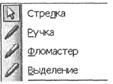 Для здійснення поміток на слайді під час демонстрації презентації можна використати кнопку в нижньому лівому куті із зображенням покажчика або команду контекстного меню Указатель (викликається на слайді, що демонструється). Microsoft PowerPoint 2003 має досить широкий вибір покажчиків (рис. 4). Слід пера і покажчика не вносить жодних змін у зміст слайда