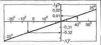 Рис. 2.13. Определение температурной поправки к показаниям денсиметра при приведении плотности электролита к температуре 25°С