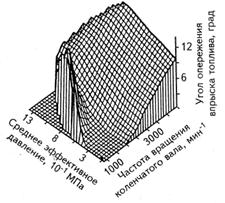 Рис. 8.11. Регулировочная характеристика дизеля по углу опережения впрыска топлива