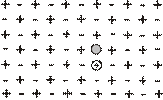 Рисунок 1.6 – Пример образования точечного дефекта: внесение n ионов Кроме указанных точечных дефектов возможно вхождение примесного атома в междоузлиях. При этом внедрившийся атом изменит идеальную локализацию основных атомов и, как во всех рассмотренных случаях, энергия решетки в окрестности дефекта изменится. Следует учитывать, что, например, положительный одновалентный катион может быть заменен двух- и даже трехвалентным катионом без появления вакансии, электростатическая нейтральность достигается за счет их вхождения в кристалл. Появляется положительно заряженный центр и связанный с ним электрон. Этот электрон характеризуется своими состояниями с уровнями энергии в оптическом диапазоне. В спектре поглощения такого кристалла появляются дополнительные линии. Такие связанные с дефектами электроны называются центрами окраски, так как их присутствие в прозрачных кристаллах вызывает их окрашивание. Этот эффект проявляется, например, в прозрачных щелочно-галоидных кристаллах, в которых эти центры возникают при их облучении g-излучением, а также при нагревании кристалла в парах щелочных металлов. При этом атомы внедряющегося щелочного металла ионизируются и занимают места положительных ионов идеального кристалла, валентность которых меньше валентности внедрившегося атома. Электроны компенсируют избыточный положительный заряд, связываясь с вакансиями. Основная роль паров металла заключается во «вклинивании» анионов и создания на их месте блокирующих электронов (рис. 1.7).