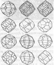 Рисунок 1.34 – Многогранники общих правильных форм кристаллов (таблица 1.2)