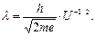 После подстановки в это уравнение значений постоянной Планка (h) массы и заряда электрона (me) и значения U (В) длина волны l