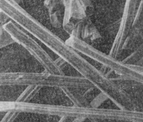 Кроме того, сонолиз (механо-химические процессы, сопровождающие УЗ-диспергирование) могут привести к образованию новых видов продуктов вследствие адсорбции (хемосорбции) радиальных фрагментов на активных центрах металлических частиц в момент их образования (in statu – nasсendi). Особый интерес представляют волокнообразные углеродсодержащие модификаторы, получаемые в результате высокотемпературной обработки органических волокон различного состава, вызывающей карбонизацию основной молекулярной цепи. Углеродные волокна обладают специфичной структурой и уникальным сочетанием прочностных и теплофизических характеристик, химической стойкости, износостойкости [154, 159]. Благодаря сочетанию высоких служебных характеристик их применяют в качестве наполнителей и модификаторов, обеспечивающих заданный диапазон эксплуатации изделий из композиционных материалов различного функционального назначения, в т.ч. триботехнических [159, 160]. Структура углеродных волокон, характеризующаяся наличием большого количества низкоразмерных дефектов, позволяет применять различные методы модифицирования с целью придания им электрических, магнитных и прочностных характеристик [159]. Разработаны углеродные волокна, содержащие легирующие нанофазы различных компонентов, введенных как при получении волокна, так и при его целевом модифицировании. Для получения армированных углеродных волокон использован прием пропитки исходного гидратцеллюлозного или полиакрилонитрильного волокна растворами соответствующих солей металлов с последующей сушкой и карбонизацией в токе инертного газа [95]. В результате формировали углеродные материалы с содержанием металла или его соединения 5-12 мас.%. Для модифицирования применяли различные соединения циркония, гафния, кремния, титана. Исходное волокно подвергали различным методам модифицирования – термообработке, активации, предварительному набуханию в специальных средах и т.п. Термическая обработка модифицированных волокон приводит к образованию высокопрочных термостойких фаз ZrO2 – HfO2; ZnC – HfC, SiC, НfC, TiC и др., которые изменяли состав и характеристики волокон, в т.ч. структуру поверхностного слоя. Характерный вид модифицированных волокон приведен на рис. 1.71.