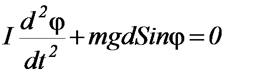 где J – момент инерции маятника относительно оси вращения, φ – угол отклонения маятника от положения равновесия, М – суммарный момент внешних сил, действующих на маятник относительно оси вращения. В экспериментальных установках обычно моменты силы трения в оси и силы сопротивления воздуха пренебрежимо малы. Поэтому Мс = – mgd sinφ, где d = │ОС│ – расстояние от оси качания до центра масс, m – масса маятника,