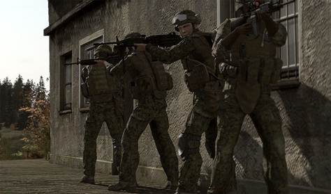 Первый подходит к углу, смотрит в оба направления и становиться на колено, второй подходит, чтобы смотреть в противоположную сторону улицы. Когда второй начинает переходить, третий берёт на себя его сектор обзора, при этом четвёртый подходит ещё ближе и продолжает прикрывать тыл.
