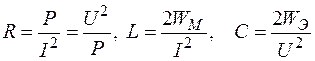 Реальные электротехнические устройства имеют схему замещения из нескольких идеализированных элементов. Каждый из них учитывает те или иные процессы, протекающие в техническом устройстве. Сопротивление R учитывает преобразование электрической энергии в тепловую, индуктивность L – накопление энергии магнитного поля, емкость С – накопление энергии электрического поля. Кроме того, сопротивление R, индуктивность L, емкость С используют также для определения параметров электрической цепи (как коэффициенты пропорциональности между соответствующими величинами: сопротивление R=U/I – между напряжением U и током I, индуктивность L = Ψ/I – между потокосцеплением Ψ=wΦ и током I, емкость C =Q/U – между зарядом Q и напряжением U). Используя формулы мощности P=I 2 R=U 2 /R и энергии, запасаемой в магнитном поле