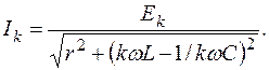 На рис. 5.22, б пунктиром построены резонансные кривые для трех гармонических составляющих периодического несинусоидального тока. Значения индуктивности L при резонансах (Lk) обратно пропорциональны квадрату номера гармоники Lk = 1 / k 2 w 2 C. Кривая общего действующего тока