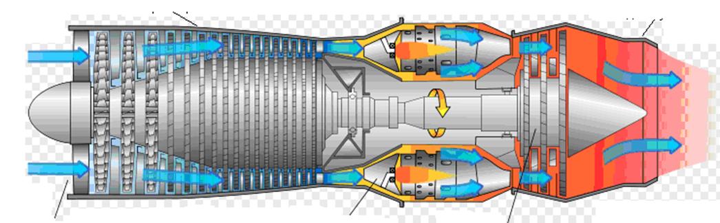 Схема двухконтурного ТРД с передним расположением вентилятора второго контура