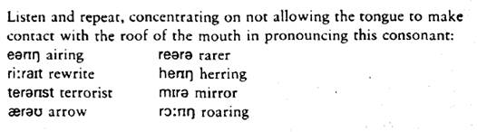 a) Watch a video about pronunciation tips for consonants [m], [n], [ŋ] (con_other_1 file and con_other_3). b) Watch a video about pronunciation tips for [j] (con_other_8 file). c) Watch a video about pronunciation tips for [ð] (con_voiced_6 file). d) Watch a video about pronunciation tips for [r] (Voiced Consonant Sound 13 - r -file). e) Watch a video about pronunciation tips for [w] (Voiced Consonant Sound 14 - w - (1) file). Exercise 11. Pronunciation exercises: pronounce the English tongue twisters and poems. You may use http:www.imtranslator.net a) A big blue bucket of blue blueberries. b) Critical cricket critic. c) If one doctor doctors another doctor, does the doctor who doctors the doctor doctor the doctor the way the doctor he is doctoring doctors? Or does he doctor the way the doctor who doctors doctors? d) (use a candle!) Peter Piper picked a peck of pickled peppers If Peter picked a peck of pickled peppers Where is the peck of pickled peppers Peter Piper picked? e) Robert Rowley rolled a round roll around, A round roll Robert Rowley rolled around; Where’s the round roll Robert Rowley rolled around? f) She sells sea shells on the sea shore, The shells she sells are sea-shells, I’m sure, For if she sells sea-shells on the sea-shore, Then I’m sure she sells sea-shore shells. g) Swan swam over the sea, Swim, swan, swim; Swan swam back again, Well swum, swan! h) A Dictionary’s where you can look things up To see if they are really there: To see if what you breathe is Air, If what you sit on is Chair, If what you comb is curly Hair, If what you drink from is a Cup. A Dictionary’s where you can look things up To see if they are really there.