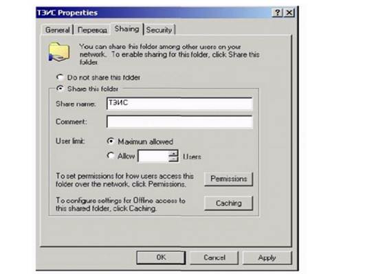Figure 1.2.5 -Provision of resources to other users To check the availability of your resource (folder) of the entire network further, tell the name of your computer to other students in the lab (Fig. 1.2.6). If your resource is available to all, then the work is done correctly.