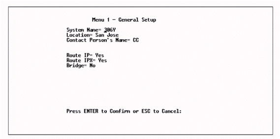 Menu 1 – General Setup. The given menu contains management and common system information. Enter 1 to the main menu for access to menu 1 – «General Setup» (Fig. 3.2.9).