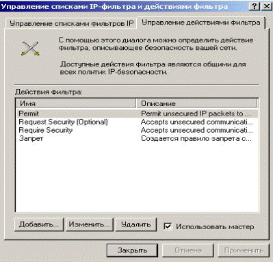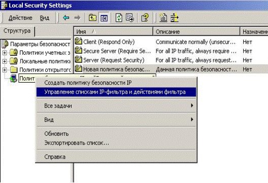 5.2.7.2 Create a new filter action. By right-clicking on the «Security Policy IP", select «Manage Lists IP-filter and filter actions» (Fig. 5.2.21).