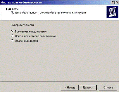 In the next window, specify, for which the connection will operate this rule. In the case of an excited this rule will apply to all network connections (Fig. 5.2.31).