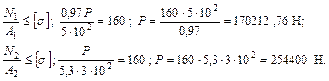 6. Вычислим допускаемую нагрузку по предельному состоянию системы. Предельные усилия в стержнях по пределу текучести: