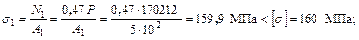 Эпюра продольных сил представлена на (рис. 1.9 в). Определим напряжения на участках