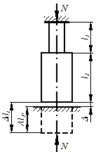 Задача статически неопределима. Для составления дополнительного уравнения учтем, что длина стержня
