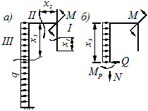 Рисунок 5.9 – Грузовое состояние – а); внутренние силы на третьем участке б). 5. По полученным данным строим эпюру изгибающих моментов рис. 5.10.