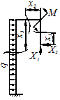 Рисунок 5.6 – Расчетные схемы по III варианту 5. Построить в основной системе эпюры изгибающих моментов от единичных сил, приложенных по направлению действия неизвестных усилий. 6. Вычислить коэффициенты канонических уравнений () по формуле интеграла Мора. 7. Вычислить величину неизвестных усилий, 8. Построить эпюры внутренних усилий 9. Проверить правильность построения эпюр, путем перемножения окончательной эпюры