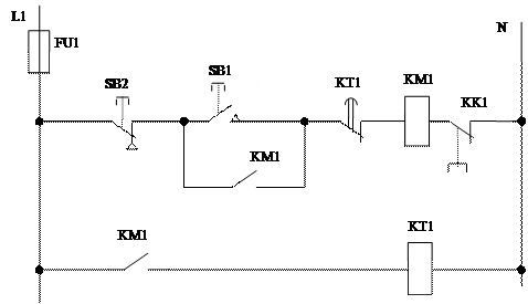 а – реверсивное звено с блокировкой от самозапуска при нажатых конечных выключателях и при исчезновении, а затем при подаче напряжения; б – звено включения технологической сигнализации