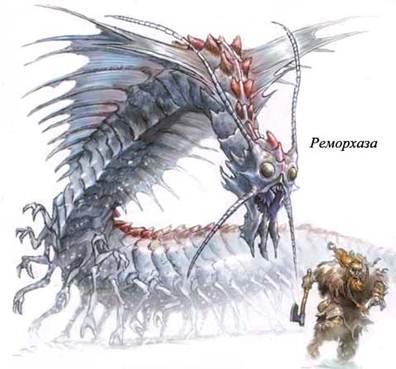 Удар Позитивной Энергии (Su): Р. может сделать касательную атаку или поразить своим укусом или ударить хвостом, чтобы передать цели положительную энергией. Энергия производит неприятное, покалывающее ощущение у живых существ, а нежити (даже бестелесной) наносит 2d10 очков повреждения. Оживить Объект (Su): 1/раунд, оживляет случайный объект в пределах 20 фт от Р., как если бы это было заклинание оживить объект animate objects, брошенное клириком 20-ого уровня. Эти объекты защищают Р., но Р. не достаточно интеллектуален, чтобы давать им определенные команды. Полет (Su): Р. может летать как под действием заклинания полёт fly, брошенного волшебником 11-ого уровня, как свободное действие. Р. который теряет эту способность может выполнять только частичные действия. Навыки: * Р. имеют навык Мультиатаки даже если им нет необходимости использовать всё своё естественное оружие. РЕМОРХАЗА (Remorhaz)