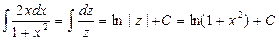@ Задача 3. Вычислить Решение: Производится замена переменных 1 + x2 = z, после чего находим 2xdx = dz. После подстановки получим:
