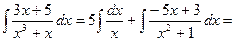 Интегралы от тригонометрических функций @ Задача 8. Вычислить интеграл Решение: Интегралы от дробно-рациональных выражений @ Задача 9. Вычислить интеграл от дробно-рациональной функции: Решение: = Если при интегрировании невозможно найти первообразную, или она не выражается элементарной функцией, то говорят, что интеграл «не берется». Например, такими интегралами являются интеграл Пуассона, интегралы Френеля, интегральный синус и т.д.