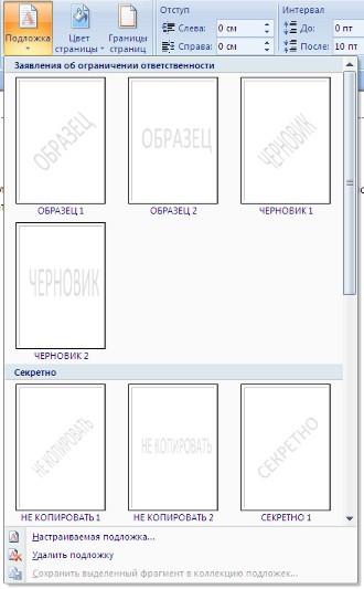 Рис. 45. Меню Подложка Если не подошла ни одна из предложенных подложек, можно создать свою. Для этого предназначен пункт «Настраиваемая подложка..».