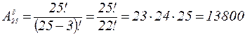 Условились считать, что Пример 1. Сколькими способами из группы, включающей 25 учащихся, можно выбрать актив группы в составе старосты, комсорга и профорга? Р е ш е н и е. Состав актива группы является упорядоченным множеством из 25 элементов по 3 элемента. Значит, искомое число способов равно числу размещений из 25 элементов по 3 элемента в каждом: