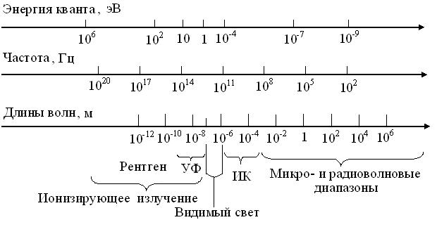 Рис. 4.1. Схема шкал электромагнитного спектра