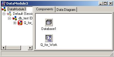 Query (закладка Data Access) Свойства DatabaseName: db_test Name: Q_for_Work