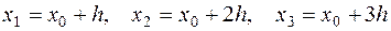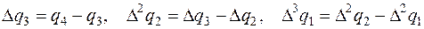 Конечные разности для точек начального участка вычисляются по формулам: