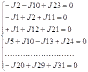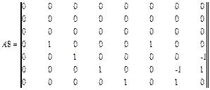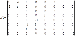 Согласно уравнению (3.1) строим матрицу инциденции A, которая в данной задаче имеет размерность 15*32: