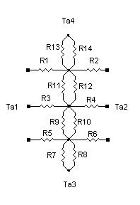 Используя функцию augment, объединим матрицы в одну, записав следующее: G11=augment (G1, G5, G5, G5) G22=augment (G5, G2, G5, G5) G33=augment (G5, G5, G3, G5) (4.16) G44=augment (G5, G5, G5, G4) Затем, чтобы получить окончательную матрицу G, необходимо воспользоваться функцией stack и объединить матрицы G11, G22, G33, G44: G=stack (G11, G22, G33, G44) (4.17) Вектор-столбец известных температур в ветвях тепловой схемы равен:
