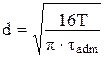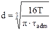 19. Диаметр вала при кручении, исходя из расчета на прочность, определяется по формуле … 1)