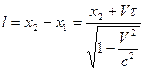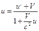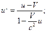 или l , Это означает, что длина предмета l ¢ в движущейся системе меньше, чем в неподвижной l. Закон сложения скоростей в соответствии с преобразованиями Лоренца принимает вид:
