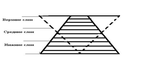 На рисунке сплошной линией обозначено расположение различных групп населения по социальной иерархической лестнице, а пунктирной – распределение общественных благ. Даже такой далекий от совершенства рисунок позволяет увидеть существенную особенность строения социальной пирамиды общества: 1) чем ниже группа населения по социальной иерархии, тем больше ее численность, и наоборот; 2) чем выше группа населения по социальной иерархии, тем больше часть общественного богатства, которая приходится на ее долю. Как видим, социальная пирамида устроена таким образом, что большая часть населения пользуется меньшим количеством благ, и наоборот, той небольшой группе, которая находится на верхушке пирамиды, доступны практически все общественные блага. Так же пирамидально располагаются «бедные» и «богатые» территории (районы) в пределах отдельных стран, республик. Основной проблемой социальной структуры, тем не менее, является не то, что она устроена пирамидально, где одни группы населения занимают более высокое положение, чем другие. Главное заключается в принципе устройства пирамиды: в силу каких обстоятельств, причин и условий та или иная социальная группа занимает именно эту позицию на этой пирамиде, которую она занимает, насколько эта позиция соответствует ее вкладу в дело создания общественного богатства, которая в каждый конкретный исторический момент распределяется между представителями этих социальных групп; и наконец, как организовать общественную систему таким образом, чтобы каждая социальная группа занимала то место на иерархической лестнице, которое она заслужила своим вкладом в общественное развитие. На основе общественного разделения труда и образа жизни можно выделить территориально-поселенческую структуру общества, которая представляет собой совокупность устойчивых общностей людей, формирующихся на основе социальной неоднородности условий жизнедеятельности в разных территориальных образованиях, и отношений между этими общностями. Термин «стратификация» происходит от «stratum» (лат.) – слой и «facio» (лат.) – делаю. Стратификация – это не просто дифференциация, перечисление различий между отдельными слоями, стратами в обществе. Задачей стратификации является выявление вертикальной последовательности положений социальных слоев, их иерархии. Теория социальной стратификации представляет собой одну из наиболее развитых частей социальной теории. Основы ее были заложены М. Вебером, К. Марксом, П. Сорокиным, Т. Парсонсом. Основой стратификационной структуры является естественное и социальное неравенство людей. В английском «Словаре социальных наук» стратификация понимается как процесс, в результате которого семьи и индивиды оказываются не равными друг другу и группируются в иерархически расположенные страты с различным престижем, собственностью и властью. Все критерии социального расслоения должны соответствовать следующим принципам (по М. Веберу и Э. Дюркгейму): 1) следует изучать все без исключения социальные слои данного общества; 2) необходимо соизмерять и сравнивать группы с помощью одних и тех же критериев; 3) критериев должно быть не меньше, чем требуется для достаточно полного описания каждого слоя. П.Сорокин определял социальную стратификацию как «дифференциацию некой данной совокупности люде