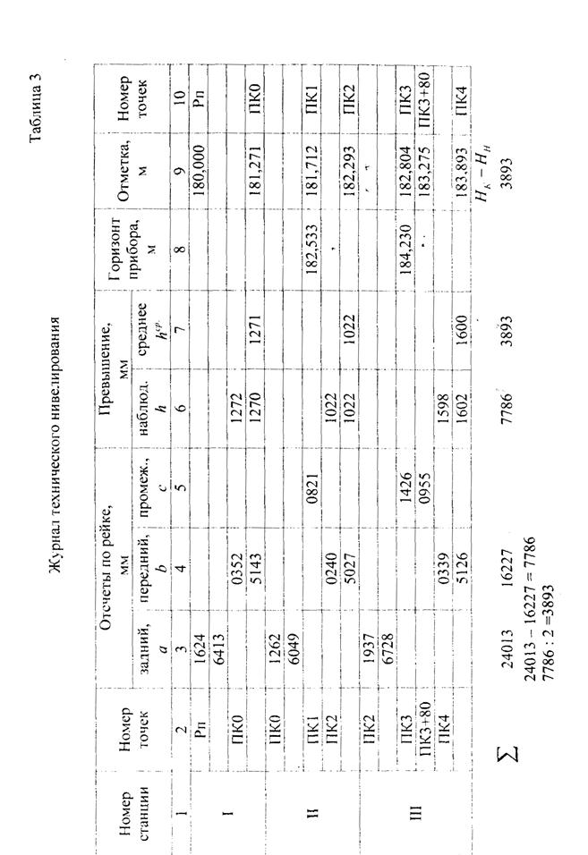 Вычисления выполнены правильно, если значения исходной и конечной отметок совпадают.