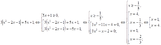 Для их решения на числовой прямой отметим точки, в которых подмодульные выражения равны нулю, на каждом из полученных интервалов определяем знаки подмодульных выражений и решаем уравнение на каждом интервале.