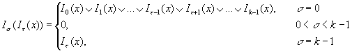 Система содержит 2(k +1) функций. Остальные свойства относятся к этой системе. 4. Идемпотентность max и min max(x,x)= x min(x,x)= x Следующие операции вводятся по определению: 5. Правило спуска символа I "вглубь" формулы: