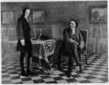 Сюжетно-композиционный центр картины находится там, где по воле автора помещен главный источник изобрази-тельной информации: лицо царя, распо-ложенное в правой частя композиции.