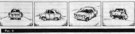 рования композиции, а значит, и воз-действия на зрителя. Человек видит удаленные от него объекты уменьшенными. Масштабные соотношения помогают нам представить взаимное расположение предметов и фигур как в реальной жизни, так и на плоскости рисунка или кинокадра. Эти изменения подчиняются строгой геометрической закономерности. Если мы соединим разновеликие предметы, уходящие вдаль, воображаемыми па- раллельными линиями, то при зри-тельном восприятии эти линии уст-ремятся навстречу друг другу и сой-дутся в -о^ной точке, которая назы-вается главной точкой схода (рис. 5). Так реальное пространство пре-вращается в пространство зрительного восприятия, которое психологи на-зывают перцептивным пространством. Сравним четыре рисунка, по-казывающие один и тот же объект, увиденный с разных точек (рис. 6): 1) фронтальная композиция, 2) вид объекта сбоку, 3) диагональная композиция, 4) диагональная композиция, при которой объект взят в ракурсе. Первый вариант передает только высоту и ширину объекта. Его лобо-вая часть скрывает от зрителей признаки, по которым можно судить о форме самого объекта и о прост-ранстве, в котором происходит дей- ствие. При такой точке съемки лю-бой предмет может показаться плос-ким. Второй вариант тоже не выявляет перспективу. Он дает характеристику высоты и длины. Иллюзии третьего измерения нет, так как нет третьего пространственного вектора. И лишь третий вариант позволяет показать высоту, ширину и длину, что создает впечатление объема и передает изобразительную модель пространства. Четвертый вариант получен при ракурсной точ <е съемки, когда кроме передней и боковой плоскостей видна еще одна, в данном случае верхняя сторона объекта. Это наиболее полная изобразительная характеристика как объекта, так и пространства, в котором он находится. — А зачем думать о передаче пространства? — мог спросить пе-щерный художник. — Зачем вам эта перспектива? А в самом деле — зачем? Очевидцы рассказывали: когда посетители первых люмьеровских киносеансов видели на экране сюжет «Прибытие поезда», то некоторые из них соскакивали с кресел, боясь ока-заться под колесами! Почему очаровательные францу-женки, испуганно вскрикивая, ус-тупали дорогу изображению парово-за? Потому что братья Люмьер со- здали аппарат, оптическая система которого воспроизводила изображе-ние по законам линейной перспек-тивы — той самой, по которой строит модель внешнего мира наш зри-тельный аппарат. «Паровоз стано-вится все больше и больше — значит он приближается» — вот что говорил экран парижанам, и, конечно, им было не по себе. Пример с жителями французской столицы не единичен. Так же реаги-ровали на экранное изображение первые зрители первых кинопро-смотров во многих странах. Достоверность экранного образа складывается из многих показателей, и один из них — достоверное изображение пространства, в котором развивается событие. Это очень важный момент. Ведь характеристика героя, который действует в какой-либо специфической обстановке, оп-ределяющей его поведение, без показа этой обстановки будет неубеди- тельной. Водители, ведущие машины по горным трассам, монтажники, работающие на высоте, строители укладывающие железнодорожные пути, — как рассказать о них, не говоря о пространстве, не стараясь передать на экране расстояния и глу-бины? Перспективные 
